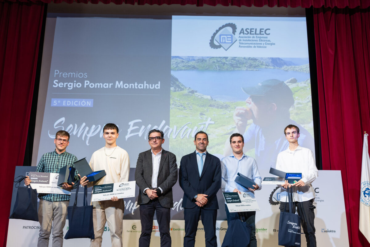 El 27 de noviembre tuvo lugar la entrega de galardones de la 5ª edición de los Premios Sergio Pomar Montahud, organizada por ASELEC con el objetivo de reconocer los mejores proyectos de fin de Módulo de Grado Superior de Formación Profesional en las áreas de Instalaciones Eléctricas, Energías Renovables, Automatización y Telecomunicaciones de la provincia de Valencia.