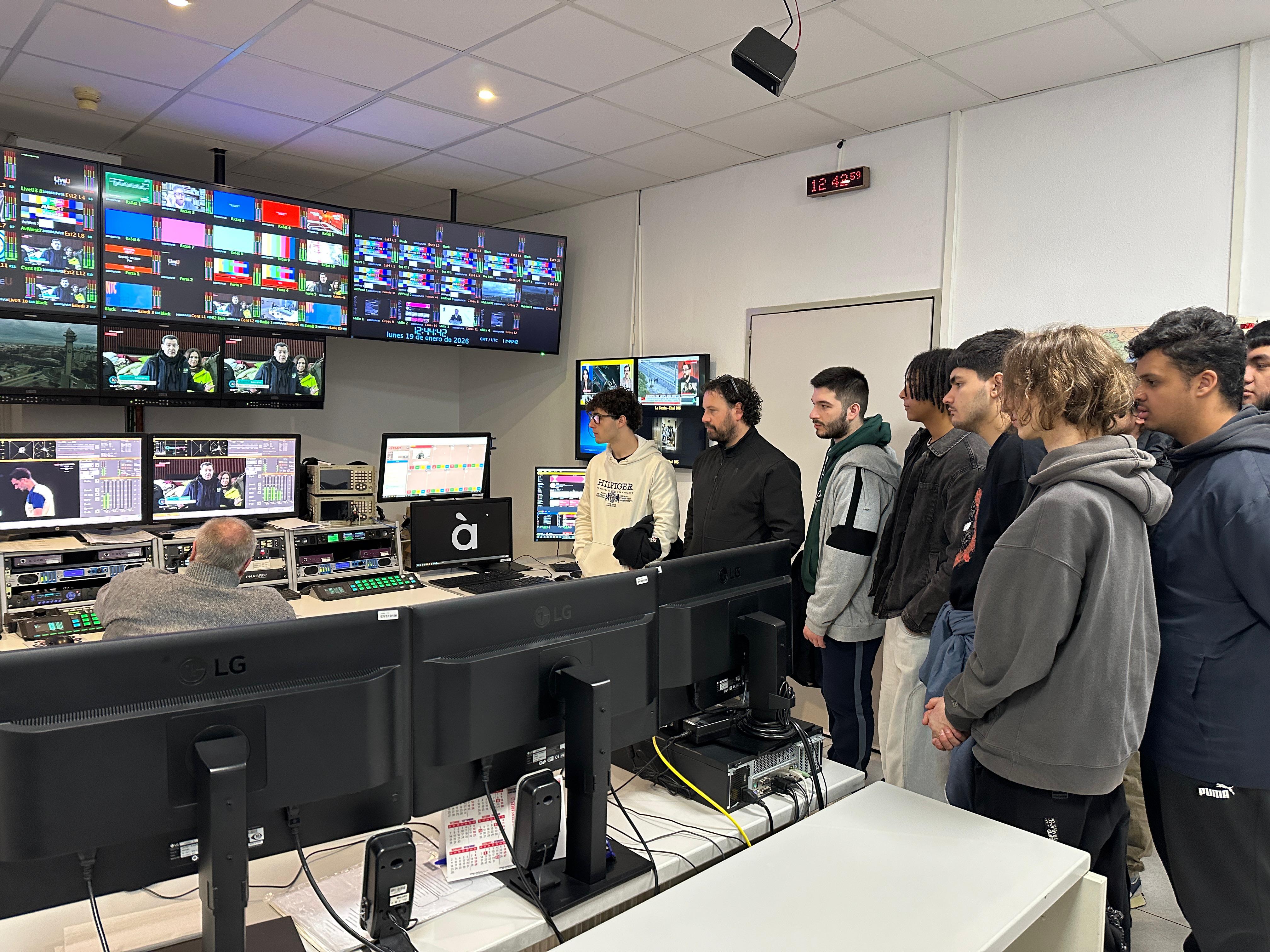 Los alumnos del ciclo formativo de grado superior en Mantenimiento Electrónico realizaron el pasado 19 de enero una visita a las instalaciones de À Punt Televisión, situadas en Burjassot. Durante la actividad, pudieron conocer de primera mano todos los equipos técnicos que conforman la televisión valenciana y su funcionamiento.